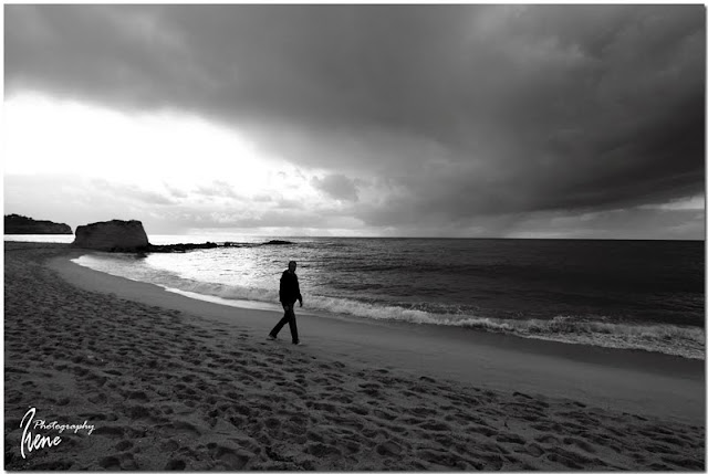 Love the wide angle and the stance of he man. Great use of the light to emphasise the approaching storm and to silhouette the lone figure.